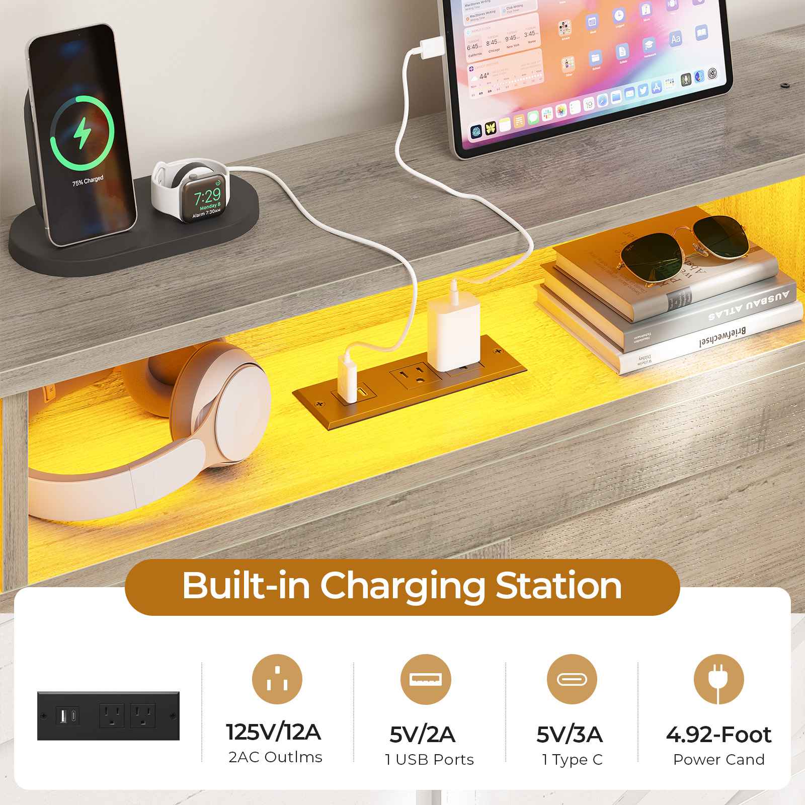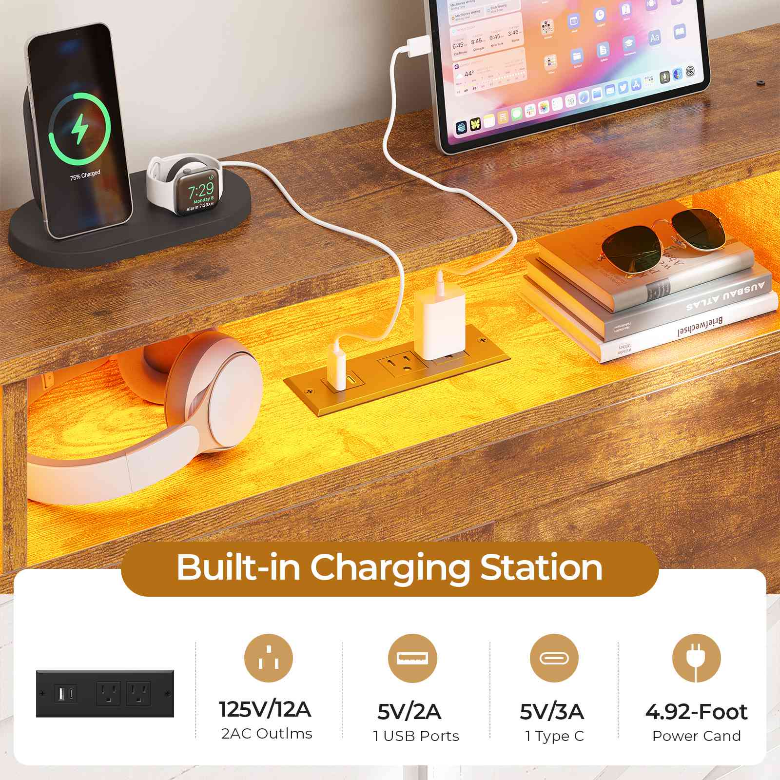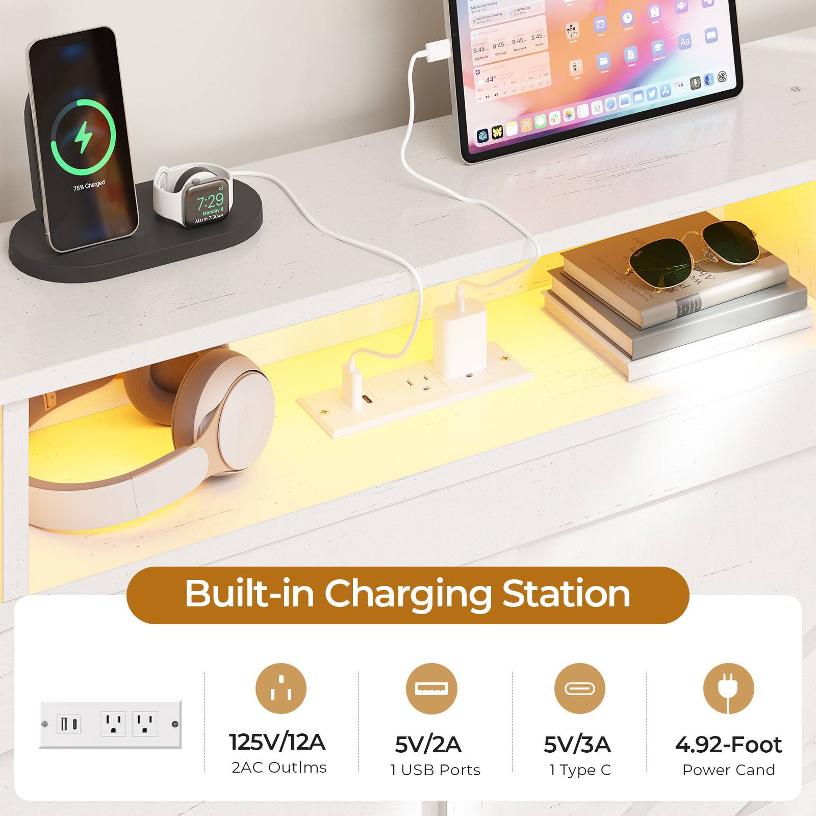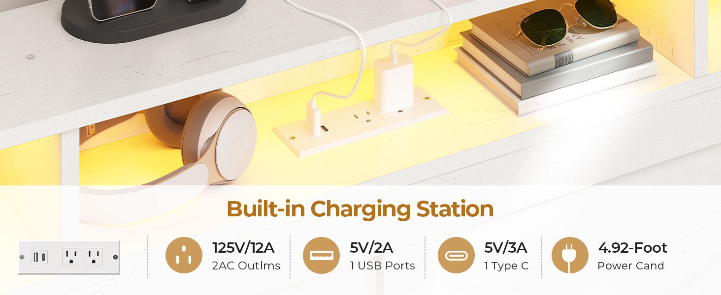 Charging Station, Convertible, LED Lighting, Space Saving, Storage Drawer