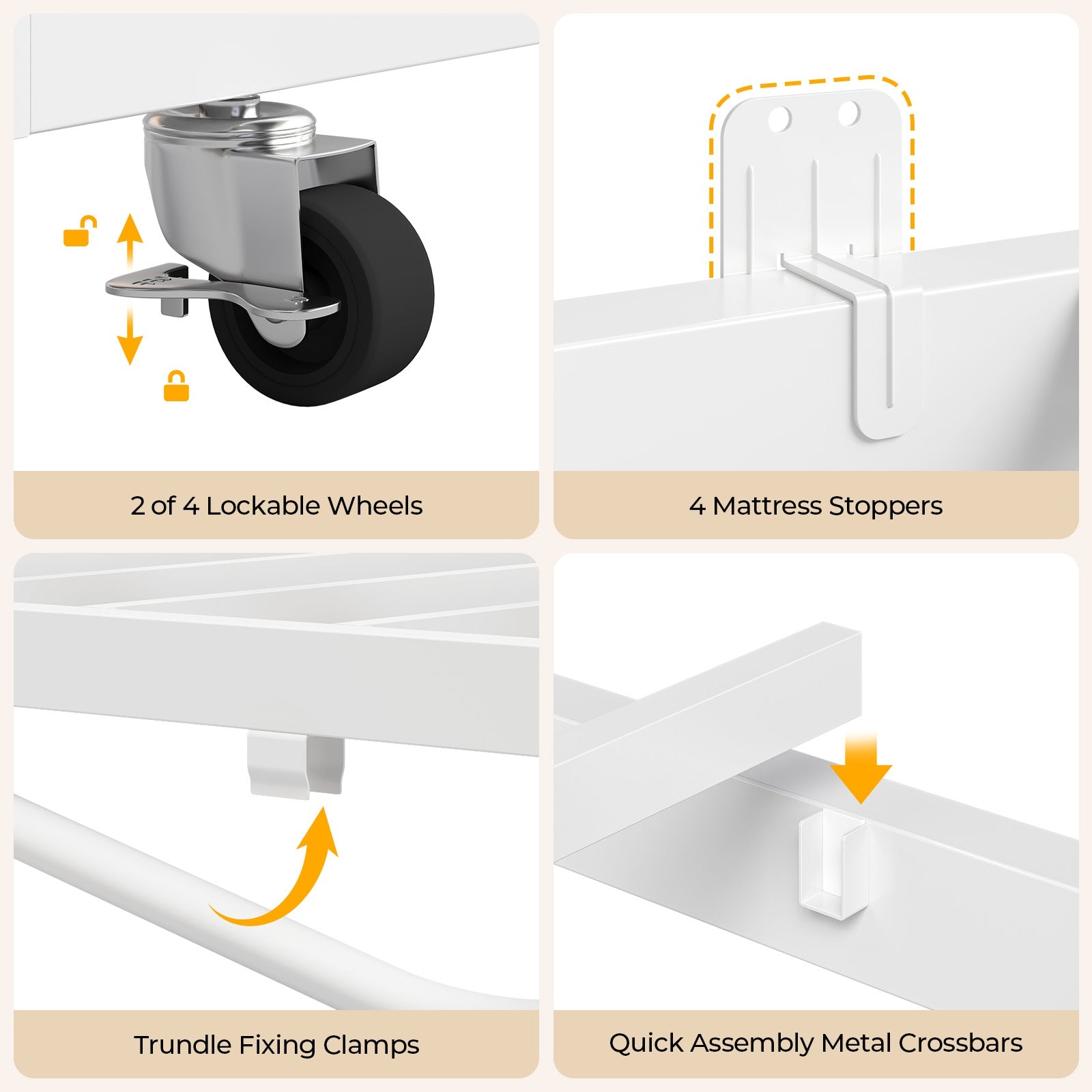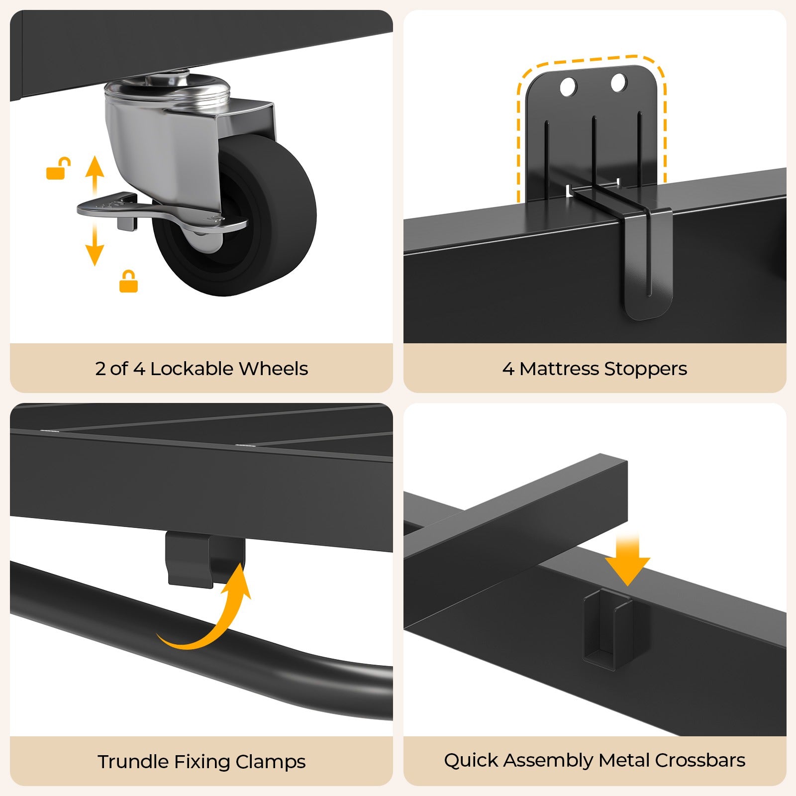 • Pop-Up Trundle: Converts to 2 twin beds or 83.7" double bed; roller design with locking wheels, space-saving.