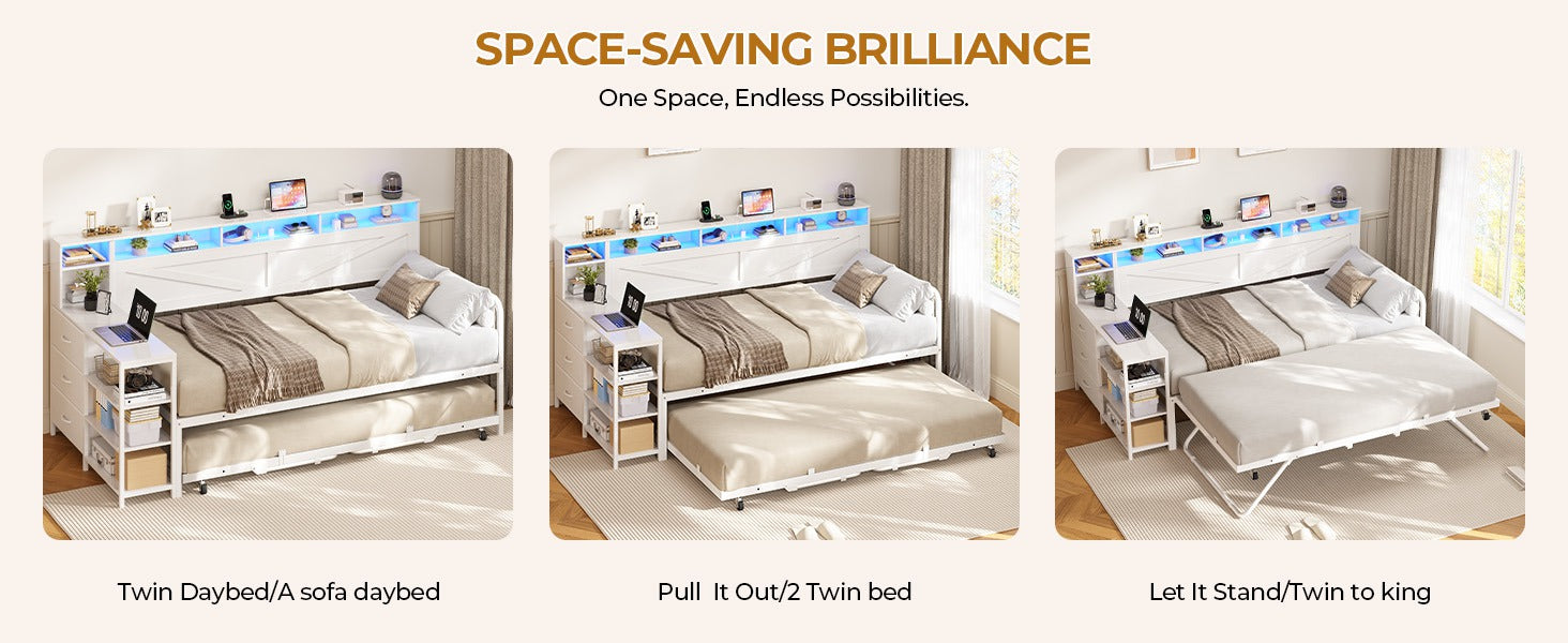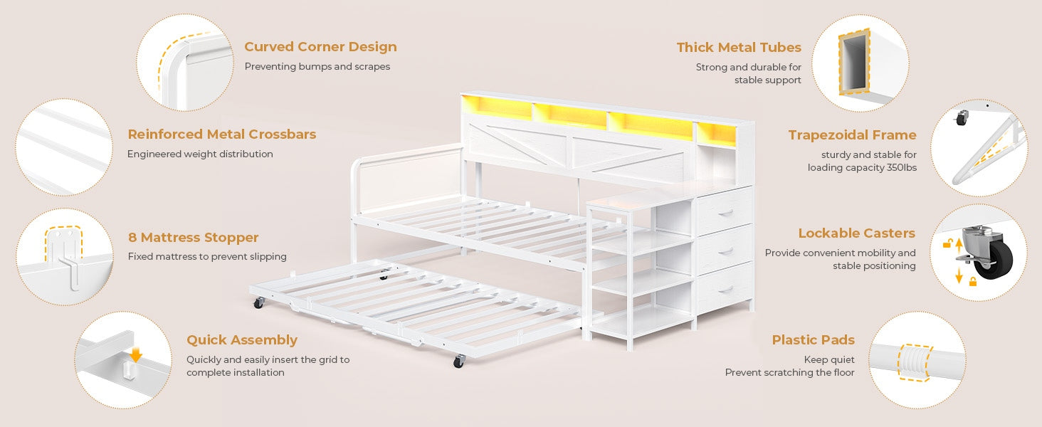 •【Effortless Assembly】 This daybed with storage package includes clear instructions, a full toolset, and numbered parts for straightforward assembly. Feel free to let us know if you need further assistance.
