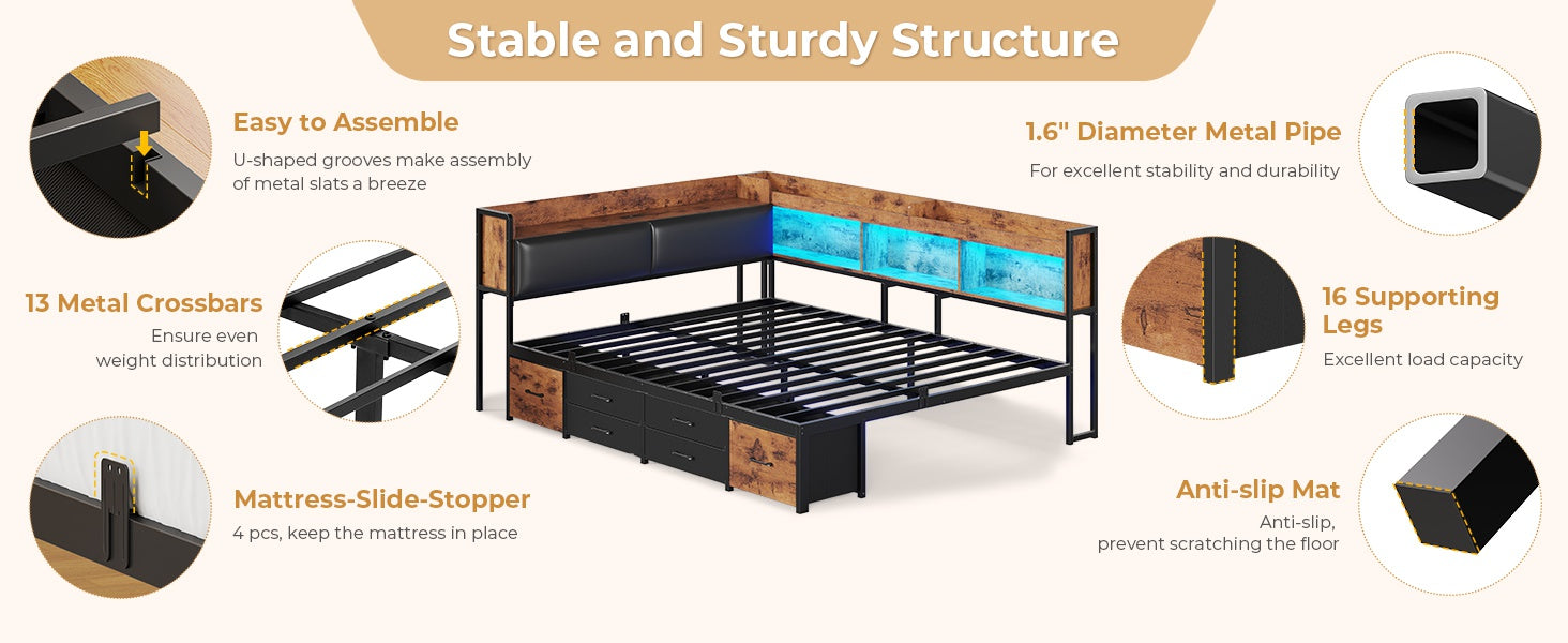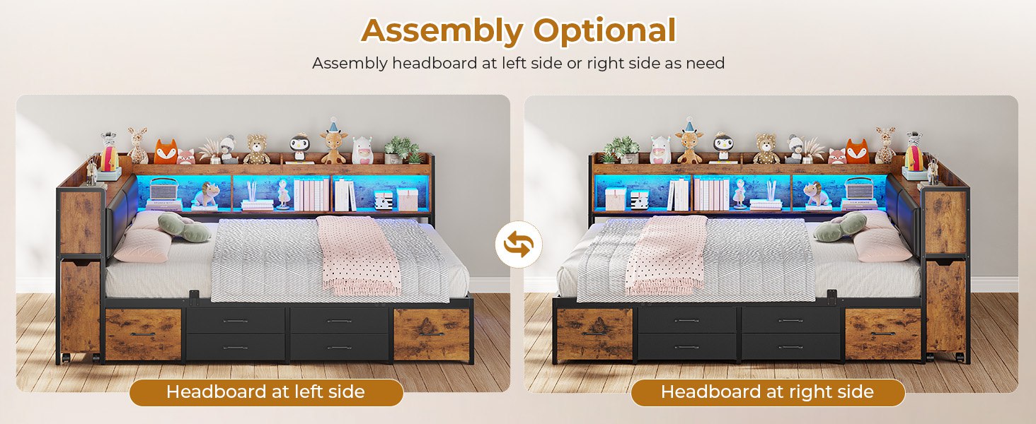 •【Easy Assembly & Dedicated Customer Support】Everything you need for straightforward setup is included: clearly numbered parts, step-by-step instructions, and necessary tools. This storage bed offers two flexible installation layouts to fit your room configuration. Should you have any questions during assembly or use, our professional support team is here to provide prompt, helpful guidance and ensure your complete satisfaction.